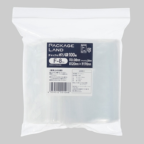 ショーエイコーポレーション チャック付ポリ袋 ヨコ120×タテ170×厚み0.08mm F-8TH 1パック(100枚)