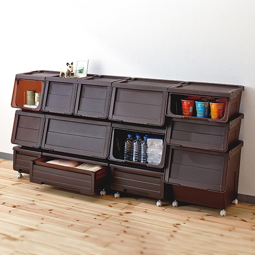 ●カバコシリーズの引出しタイプ。クリアブラウンの60cm幅サイズです。上に同幅のカバコ、または幅30cmサイズを2列積重ねられます。