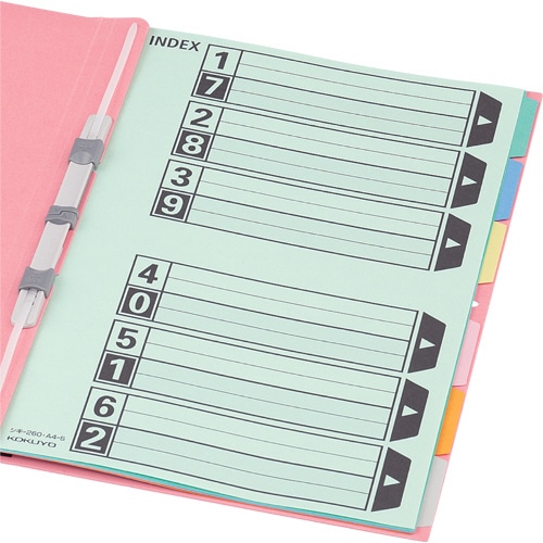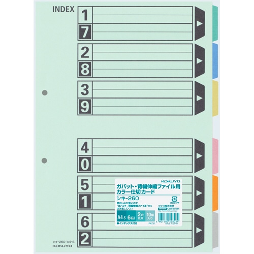 コクヨ カラー仕切カード(ガバット・背幅伸縮ファイル用・6山見出し) A4タテ 2穴 シキ-260 1パック(10組)