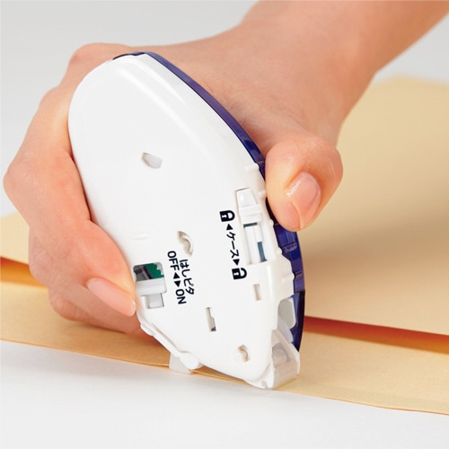 ●紙の端に沿って、すばやく真っすぐにテープのりを引くための「はしピタガイド」を搭載。はみ出しやテープの曲がりを防ぎ、キレイに気持ちよくテープを引くことができます。