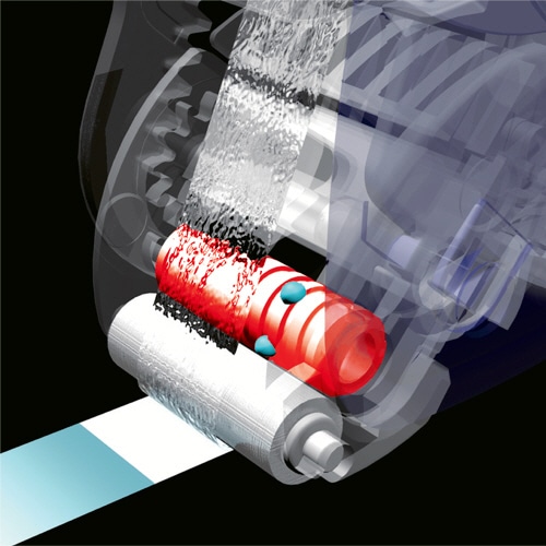 【詰替タイプ】「パワーギア」でテープ詰まりを抑制してたるむことなく使い続けられる。