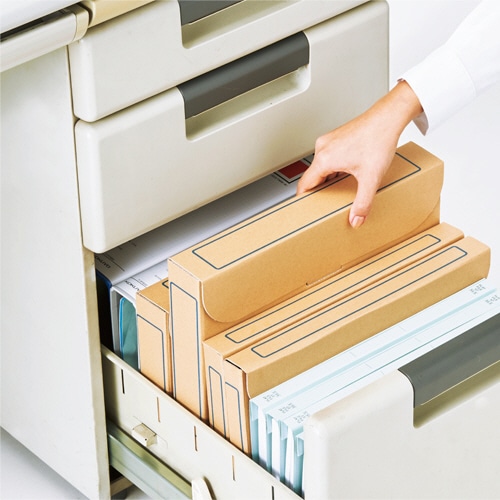 ●A4サイズ背幅53mm、ナチュラルの紙製ファイルボックス。5冊入。