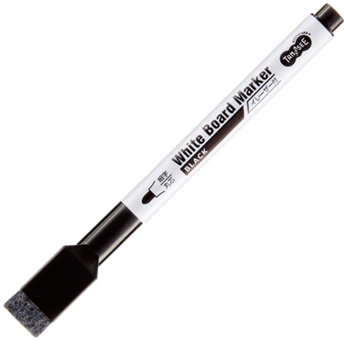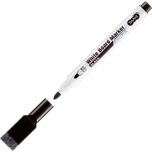 TANOSEE イレーザー付ホワイトボードマーカー 細字・丸芯 黒 1本