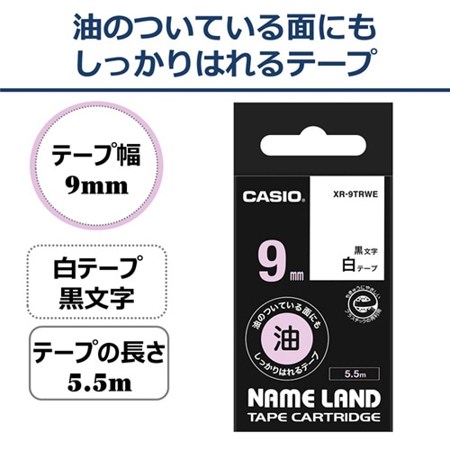 カシオ NAME LAND 油の付いている面にもしっかりはれるテープ 9mm×5.5m 白/黒文字 XR-9TRWE 1個