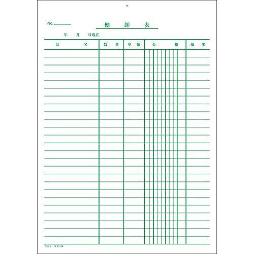コクヨ 決算用紙 棚卸表 B5 薄口上質紙 25行 40枚 ケサ-34N 1冊