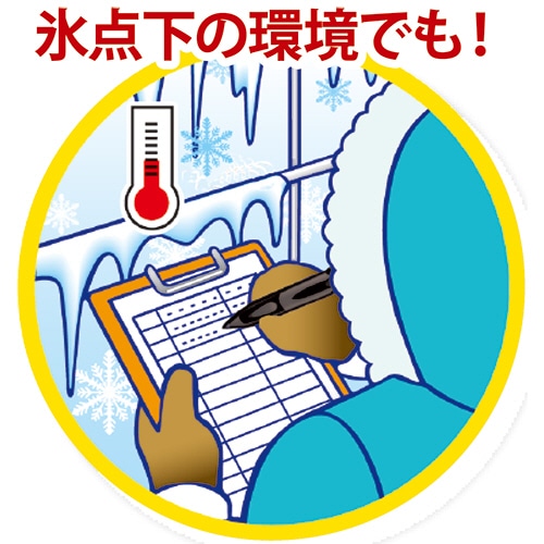 加圧式なので上向き筆記や濡れた紙へも、-20℃の低温下でも筆記可能です。