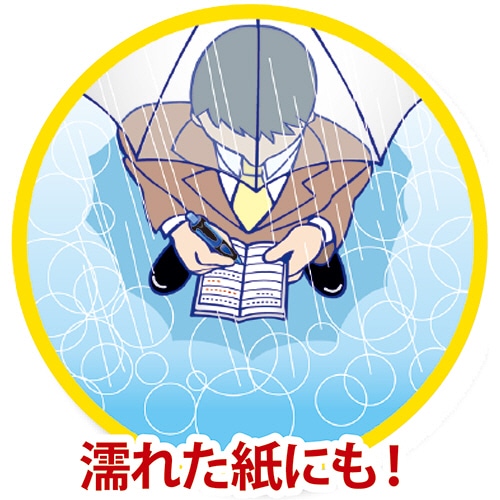 加圧式なので上向き筆記や濡れた紙へも、-20℃の低温下でも筆記可能です。