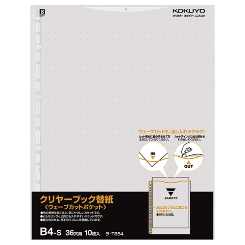 コクヨ クリヤーブック(ウェーブカットポケット)用替紙 B4タテ 2・36穴 グレー ラ-T884M 1パック(10枚)