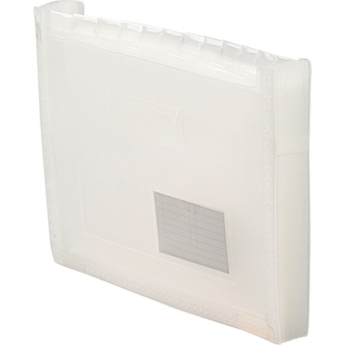 ボリュームに応じて幅を調整できる、自立・開放型ポケットファイル。