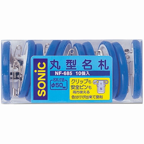ソニック 丸型名札 大 両用 青 NF-685-B 1パック(10個)