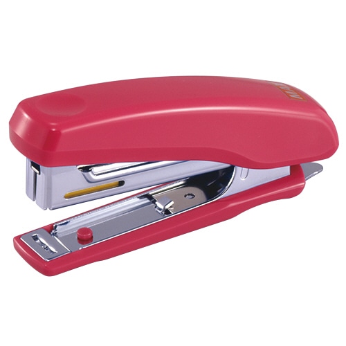 ●ノーマルクリンチ、20枚とじのホッチキス。本体色はピンクです。