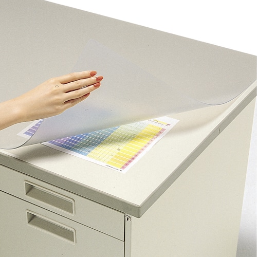 環境に配慮した再生オレフィン系樹脂使用のデスクマット。光の反射が少なく、目にやさしいタイプ。