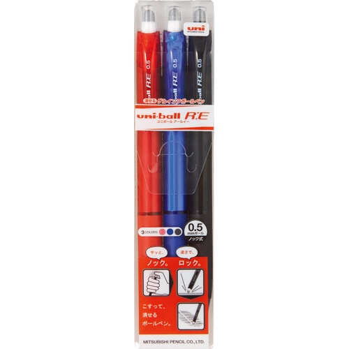 三菱鉛筆 消せる ゲルインクボールペン ユニボールR:E 0.5mm 3色(各色1本) URN180053C 1パック