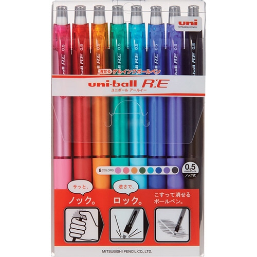 三菱鉛筆 消せる ゲルインクボールペン ユニボールR:E 0.5mm 8色(各色1本) URN180058C 1パック