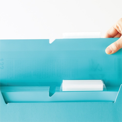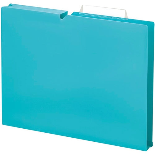 | 商品仕様 | ●サイズ/A4 ●色/ターコイズブルー ●寸法/タテ240×ヨコ309mm ●厚さ/0.2mm ●材質/R-PP ●その他仕様/●マチ幅:30mm ●収容枚数:約300枚 ●見出しカード付 |