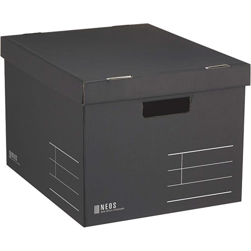 コクヨ 収納ボックス(NEOS) Lサイズ フタ付き ブラック A4-NELB-D 1個