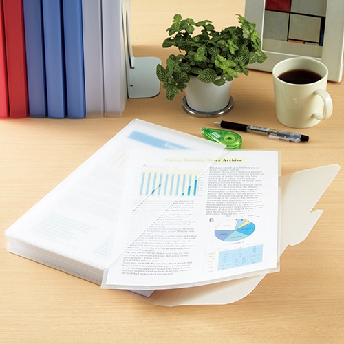 ●水・汚れに強いPP製のケースファイル、色はピンクです。