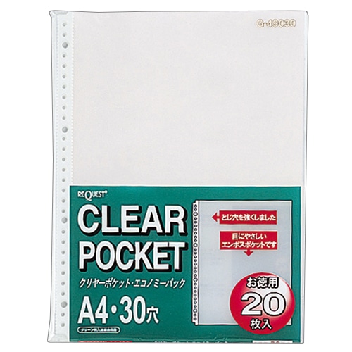 リヒトラブ リクエスト クリヤーポケット(エコノミーパック) A4タテ 2・4・30穴 台紙なし G49030 1パック(20枚)