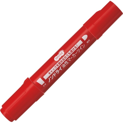 TANOSEE キャップ式ノンドライ油性マーカー ツイン 太字+細字 赤 1本