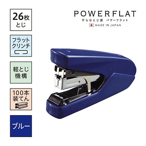 | 商品仕様 | ●色/ブルー ●とじ枚数/26枚 ●針装てん数/100本 ●針タイプ/No.10-1M、No.10-5M ●クリンチ/フラットクリンチ ●寸法/W26×D109×H62mm ●重量/140g ●その他仕様/●ワンタッチオープン ●ダブルハンドル構造 ●リムーバー付 ●カラー/ブルー(系) |