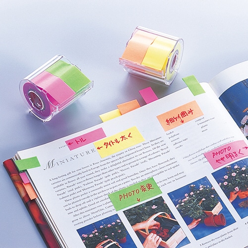 使う分だけカットするロールタイプふせん。しっかり貼ってきれいにはがせます。