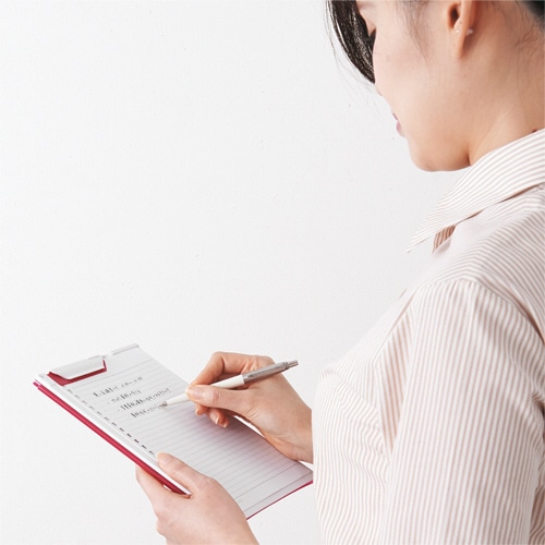 ●外出先や立ったままでの記入がしやすいA5のクリップファイル、色は黒(不透明)です。