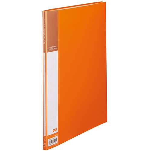 ●ヨコ入れタイプのクリヤーファイル。20ポケット(10シート)のオレンジです。