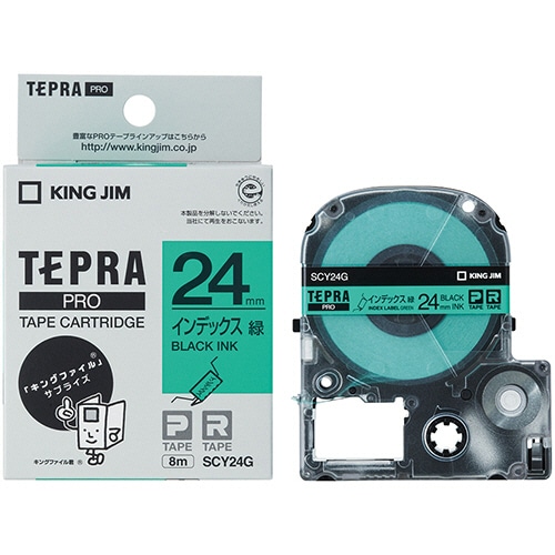 キングジム テプラ PRO テープカートリッジ インデックスラベル 24mm 緑/黒文字 SCY24G 1個