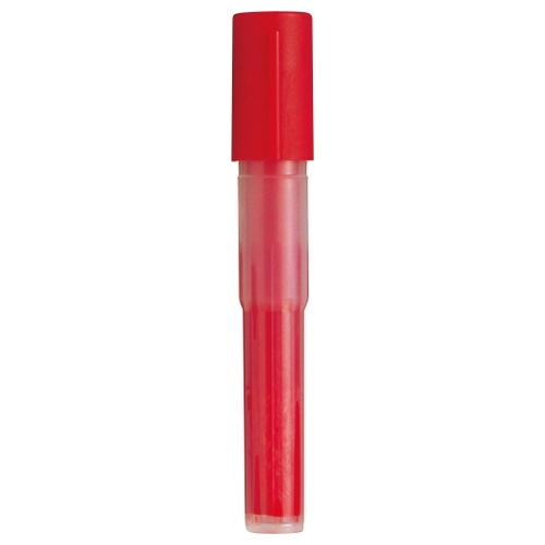| 商品仕様 | ●インク種類/アルコール系油性染料 ●インク色/赤 ●対応マーカー/NX50-B、NX60-B ●寸法/W15×D14×H85mm ●材質/キャップ:再生PP、ケース:PP、中綿:アクリル ●重量/5g ●シリーズ名/ハンディ |