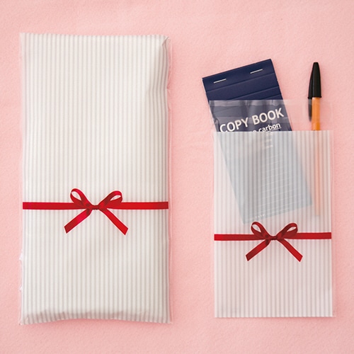 ●リボンが印刷されたW120×H180mmのOPP袋。