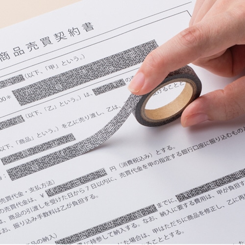 ●書類やコピー・FAXの一時的な目隠しに隠したい部分に貼ることができる、8mm幅・地紋模様のテープです。
