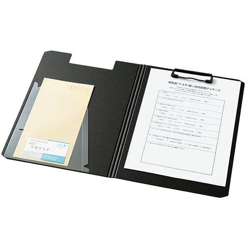 ●薄くて軽い発泡PP製のクリップファイル、表紙色はグリーン、内側はブラックです。