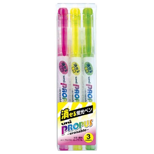 三菱鉛筆 蛍光ペン プロパス・イレイサブル 3色(各色1本) PUS151ER3C 1パック