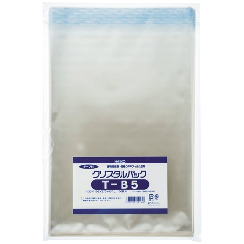 シモジマ HEIKO クリスタルパック T(テープ付) T-B5 0.03×195×270+40mm #6743100 1パック(100枚)