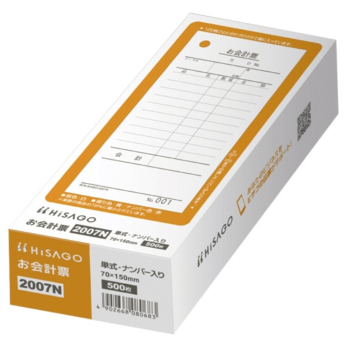 ヒサゴ お会計票 70×150mm 単式 No.入 2007N 1箱(500枚)