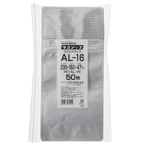 セイニチ ラミジップ(チャック付アルミ袋) スタンドタイプ ヨコ160×タテ230(ガゼット幅47)mm シルバー AL-16 1パック(50枚)