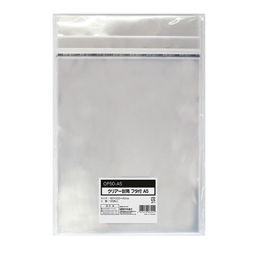 今村紙工 クリアー封筒 フタ・テープ付 A5 160×220+40mm 0.05mm厚 OP50-A5 1パック(100枚)