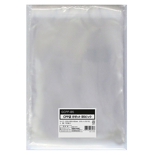 今村紙工 CPP袋 ガゼットB5ビック フタ・テープ付 205×(10+10)×280+60mm 0.04mm厚 GCPP-B5 1パック(100枚)