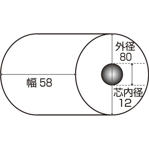 商品仕様 | ●保存期間の目安/ノーマル保存 ●ロール紙サイズ/幅58×直径80mm ●ロール紙長さ/63m ●穴内径/12mm ●厚み/約0.075mm ●備考/※お使いの用紙のサイズをご確認ください。 |