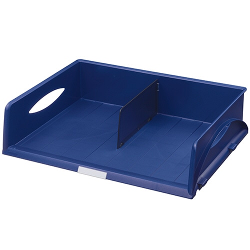 商品仕様 | ●サイズ/A3ヨコ ●色/ブルー ●外寸/W490×D385×H125mm ●内寸/W470×D355×H108mm ●耐荷重/約9kg ●材質/ポリスチレン ●付属品/仕切り板1枚、ラベルホルダー・ラベル1セット ●その他仕様/●最大積み重ね段数:12段 |