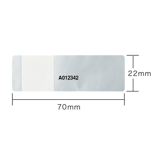 | 商品仕様 | ●寸法/W70×D×H22mm ●材質/表面印刷:UVインキ、表面基材:アルミ蒸着処理を施したPETフィルム、表面基材面ベロ部分:紙の片面にポリエチレンをラミネートし、その上にシリコン処理を施したもの、粘着剤:アクリル系溶剤タイプ、セパレーター:グラシン紙の片面にポリエチレンをラミネートし、その上にシリコン処理を施したもの ●その他仕様/●なりすまし防止タイプ ●シートサイズ:W80×H125mm ●対象物:メディア媒体、パソコン周辺機器、キャビネットなど ●備考/※寸法はシール1枚あたりの大きさ |