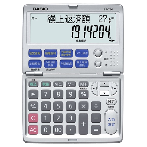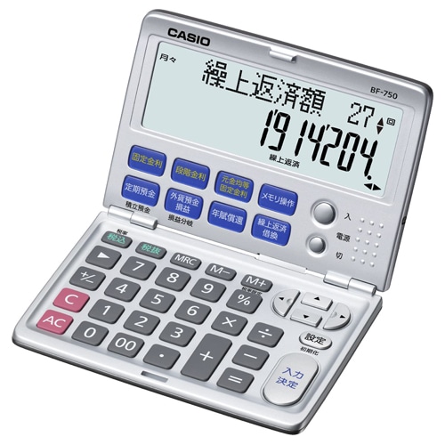 「繰上返済計算」や「借換計算」機能を搭載した大画面漢字表示・12桁電卓。複雑なローン計算も簡単シミュレーション。