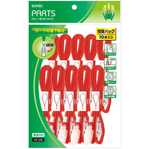 ソニック 吊下げひも IDカード用ロック式 赤 NF-558-R 1パック(10本)
