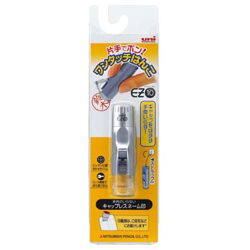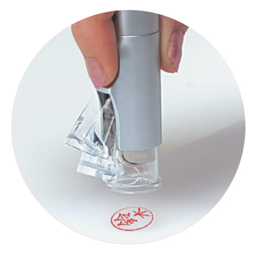 | 商品仕様 | ●書体/楷書体、行書体、古印体 ●印面サイズ/直径10mm ●文字数/4文字×2行まで ●インク色/朱色 ●本体色/銀 ●寸法/W56×D25×H188mm ●材質/再生ABS ●重量/24.5g ●備考/※サイズは、1パックあたりのサイズです。 ※商品は本体のみのお届けです。本体が届いたらインターネットか付属ハガキで印面をご注文ください。 ●シリーズ名/ユニネーム |