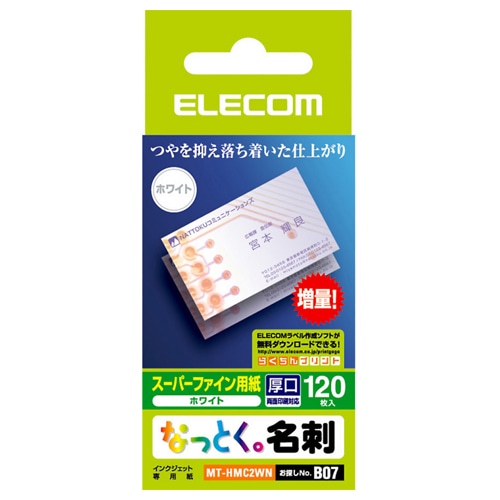 エレコム なっとく名刺 スーパーファイン用紙 カットタイプ 名刺サイズ ホワイト 厚口 MT-HMC2WN 1冊(120シート)
