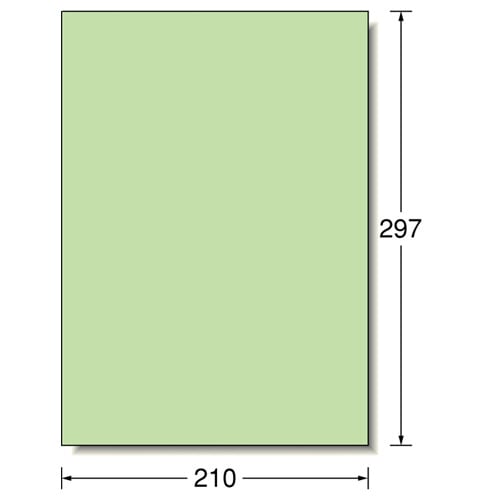 商品仕様 | ●サイズ/A4 ●シートサイズ/210×297mm ●ラベルサイズ/210×297mm ●面付け/ノーカット ●紙質/上質紙 ●坪量/125g/m2 ●ラベルの厚み/0.08mm ●総厚み/0.14mm ●紙色/ライトグリーン ●重量/155g |