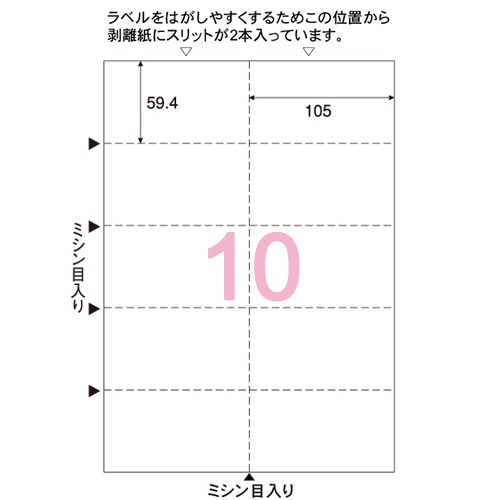| 商品仕様 | ●サイズ/A4 ●シートサイズ/210×297mm ●ラベルサイズ/59.4×105mm ●面付け/10面 ●紙質/上質紙 ●坪量/115g/m2 ●ラベルの厚み/0.07mm ●総厚み/0.13mm ●紙色/白 ●備考/※ラベルを印刷する際は「ラベル」あるいは「厚紙」設定でお使いください。給紙方法や設定等はそれぞれのプリンタマニュアルでご確認ください。 ※インクジェットプリンタで印刷の際は、普通紙設定で印刷してください。本製品には耐水性はありません。 ※剥離紙(台紙)は樹脂ラミネート加工がされていないので、そのままリサイクルが加工です。 ※メーカーホームページより印刷用ソフト「ヒサゴ工房」を無料でダウンロードできます。 |