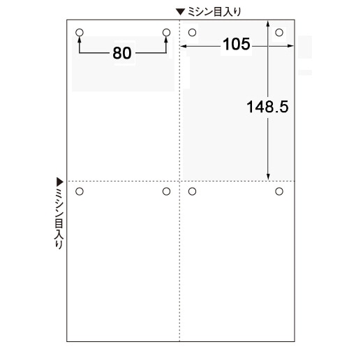 ●プリンタを選ばないマルチ素材。A4サイズ・4面・8穴の白紙帳票。
