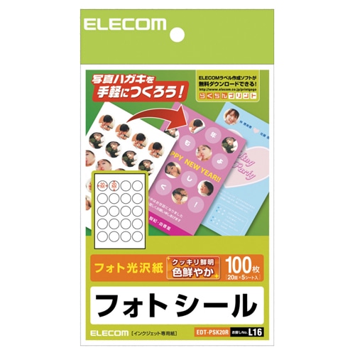 エレコム フォトシール (ハガキ用) 丸形 20面 直径20mm EDT-PSK20R 1冊(5シート)