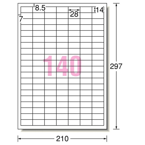 商品仕様 | ●サイズ/A4 ●シートサイズ/210×297mm ●ラベルサイズ/14×28mm ●面付け/140面 ●カット内容/7列×20段 ●紙質/上質紙 ●坪量/130g/m2 ●ラベルの厚み/0.09mm ●総厚み/0.15mm ●白色度/90% ●紙色/白無地 ●再剥離/○ ●その他仕様/●用紙特性:マット ●手書き対応 ●備考/※顔料インクでは、表面素材の特性上、インクが乾きにくいので、印刷面にはできるだけ触れないようにしてください。 |